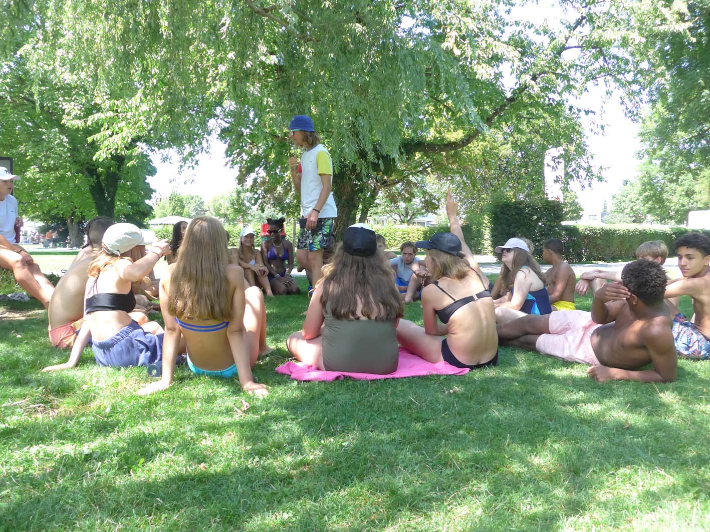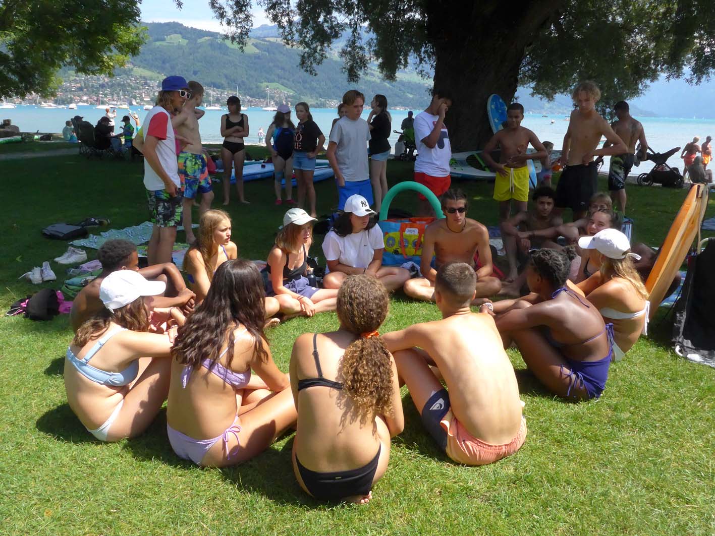 On peut faire ce que l’on veut, ce lieu de camp est magique ! Le chalet magnifique, le décor de l’Oberland Bernois majestueux, le lac inimitable, la forêt unique pour les chasses à numéro et des activités illimitées dans cette région. Mais surtout, surtout, cette année encore, une équipe de jeunes qui participent cool et qui doit encore attendre pour vivre notre fameuse « beach night » que nous avons dû pour la 3ème fois annuler, car la pluie est venue jouer les trouble-fêtes. On garde des souvenirs impérissables des autres activités, dont les TD des stagiaires !