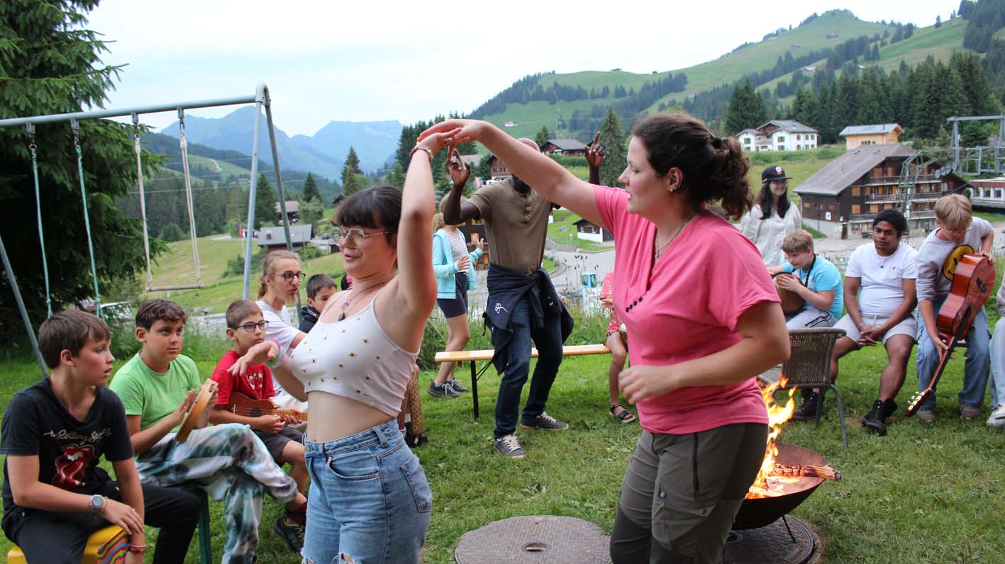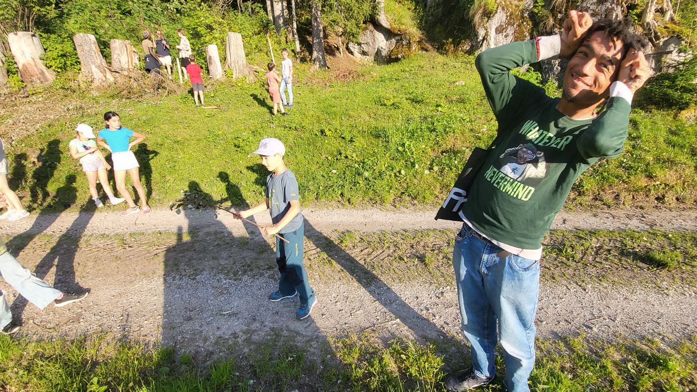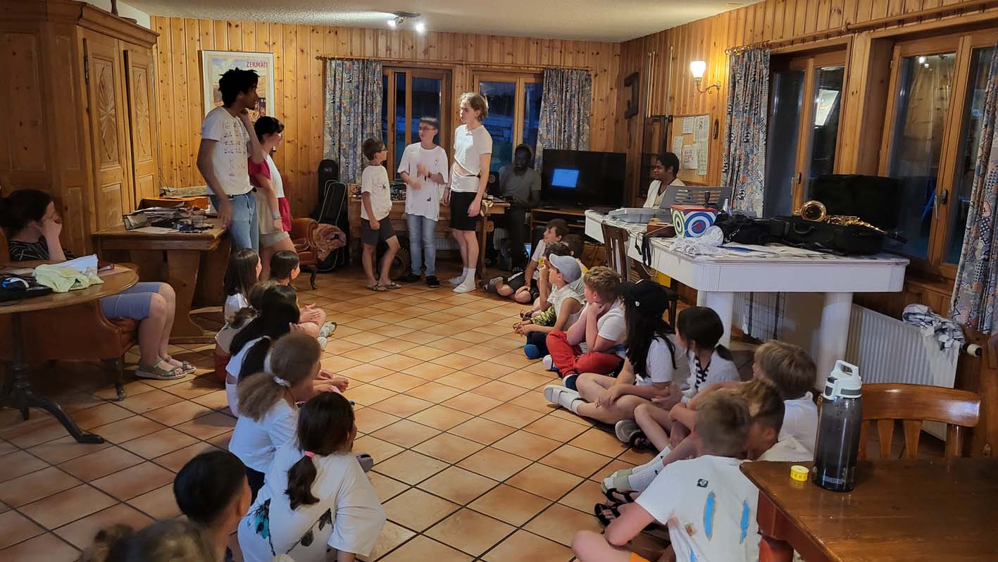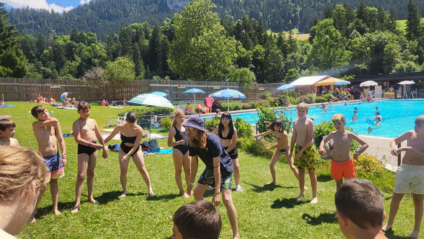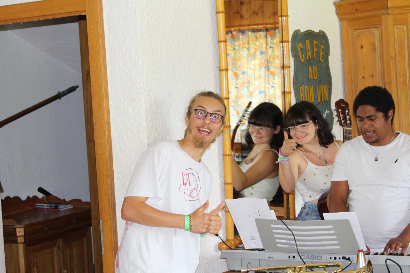 Mais quelle joie, cette énergie musicale débordante que nous portons partout : à la piscine et lors des balades sans oublier nos lumineuses soirées en sons et lumières. Lorsque même les nuages s’arrêtent pour se ragaillardir les oreilles, c’est parce que la musique est bonne, et lorsque la musique est bonne on s’abonne au camp la musique est bonne.