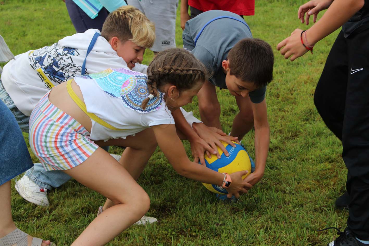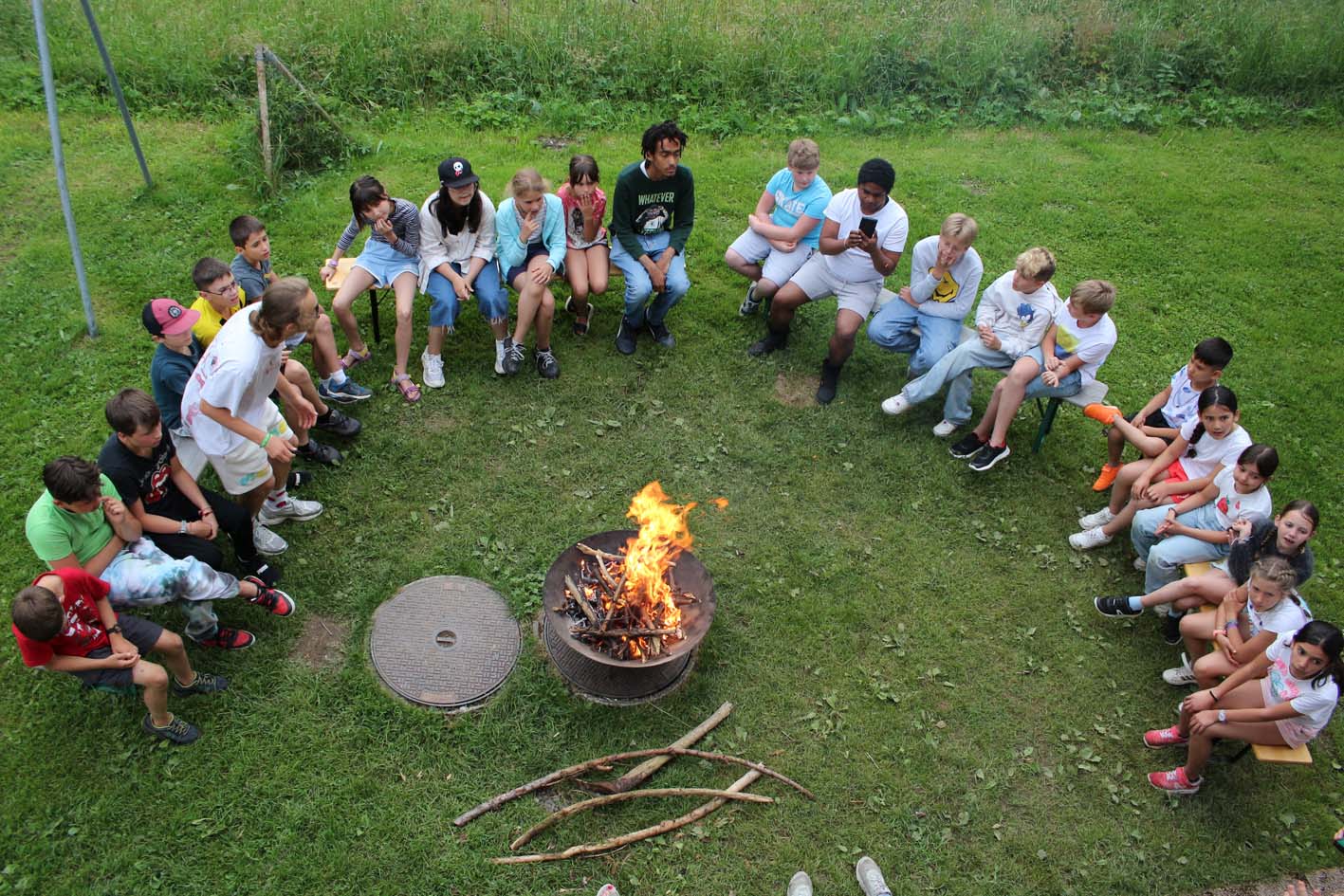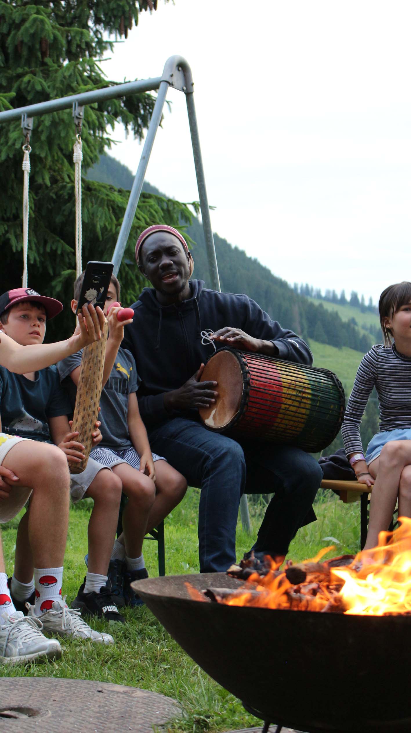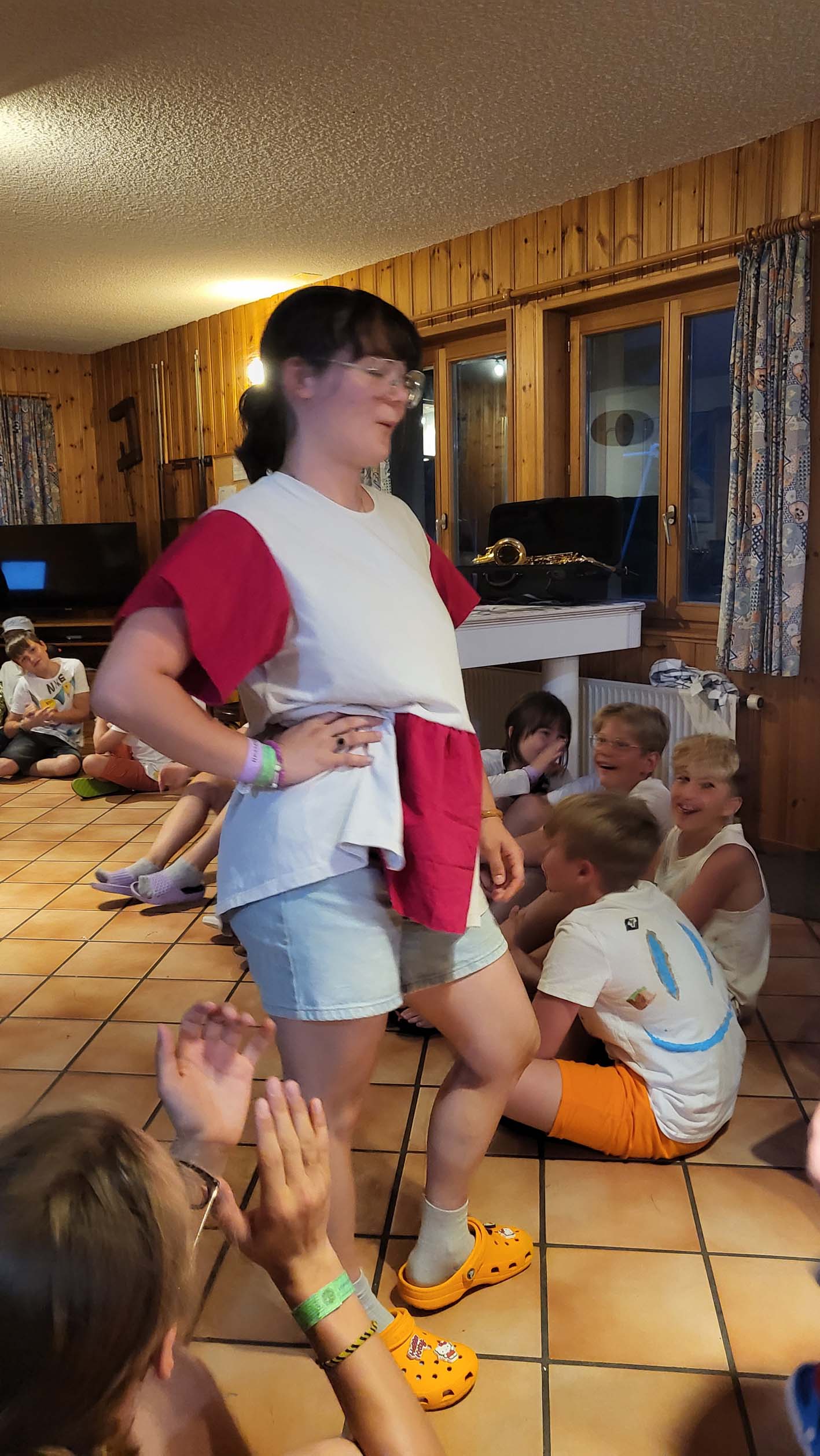 Mais quelle joie, cette énergie musicale débordante que nous portons partout : à la piscine et lors des balades sans oublier nos lumineuses soirées en sons et lumières. Lorsque même les nuages s’arrêtent pour se ragaillardir les oreilles, c’est parce que la musique est bonne, et lorsque la musique est bonne on s’abonne au camp la musique est bonne.