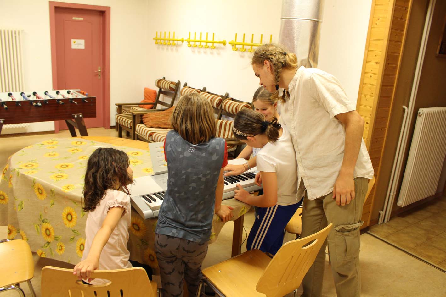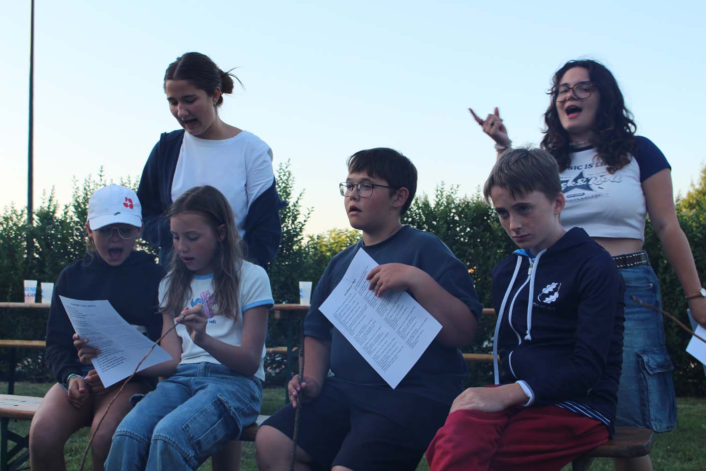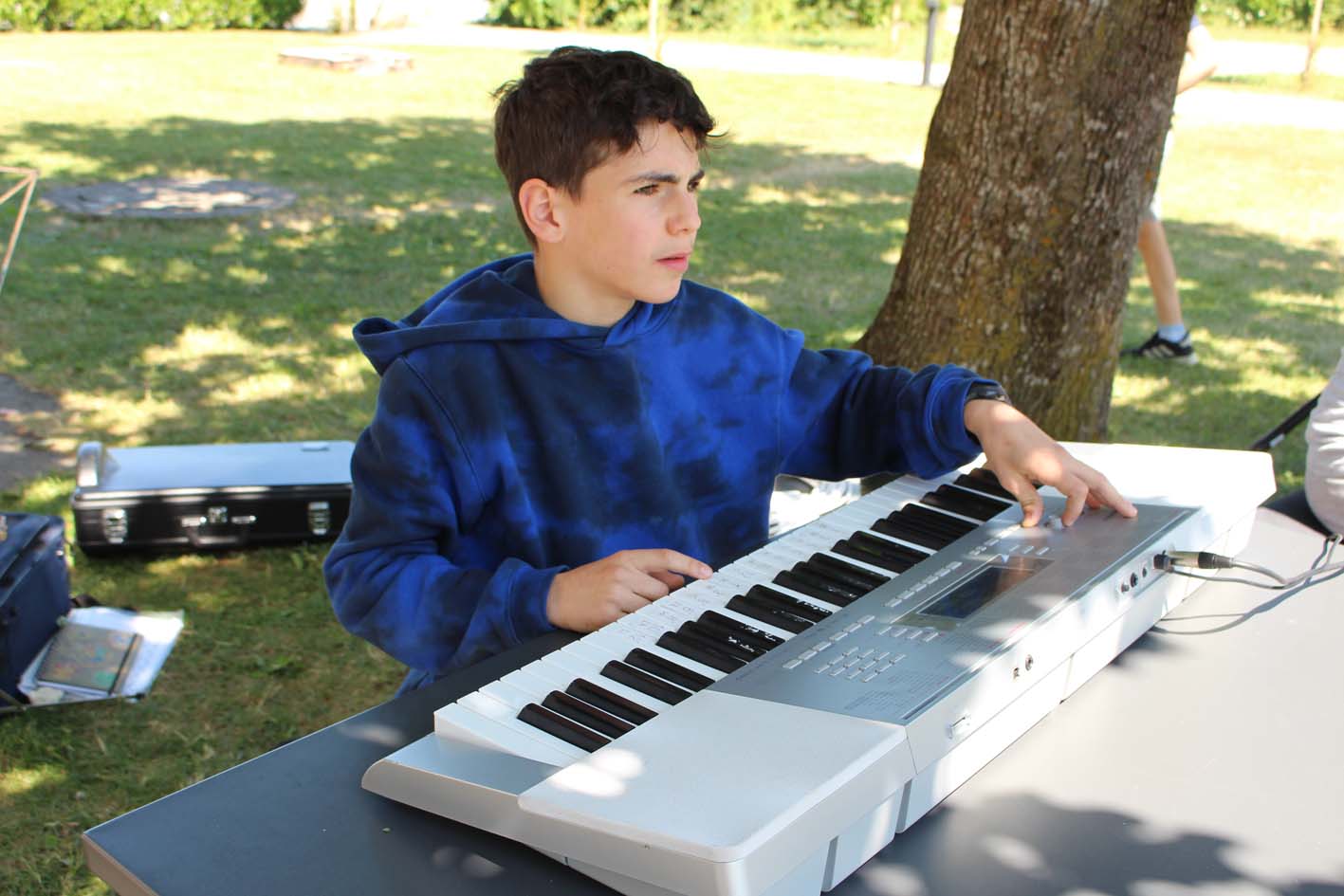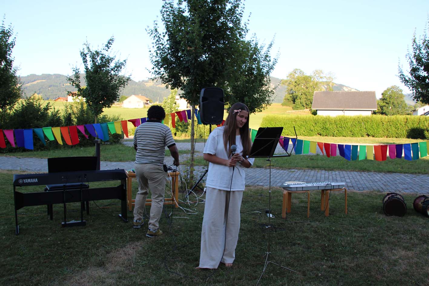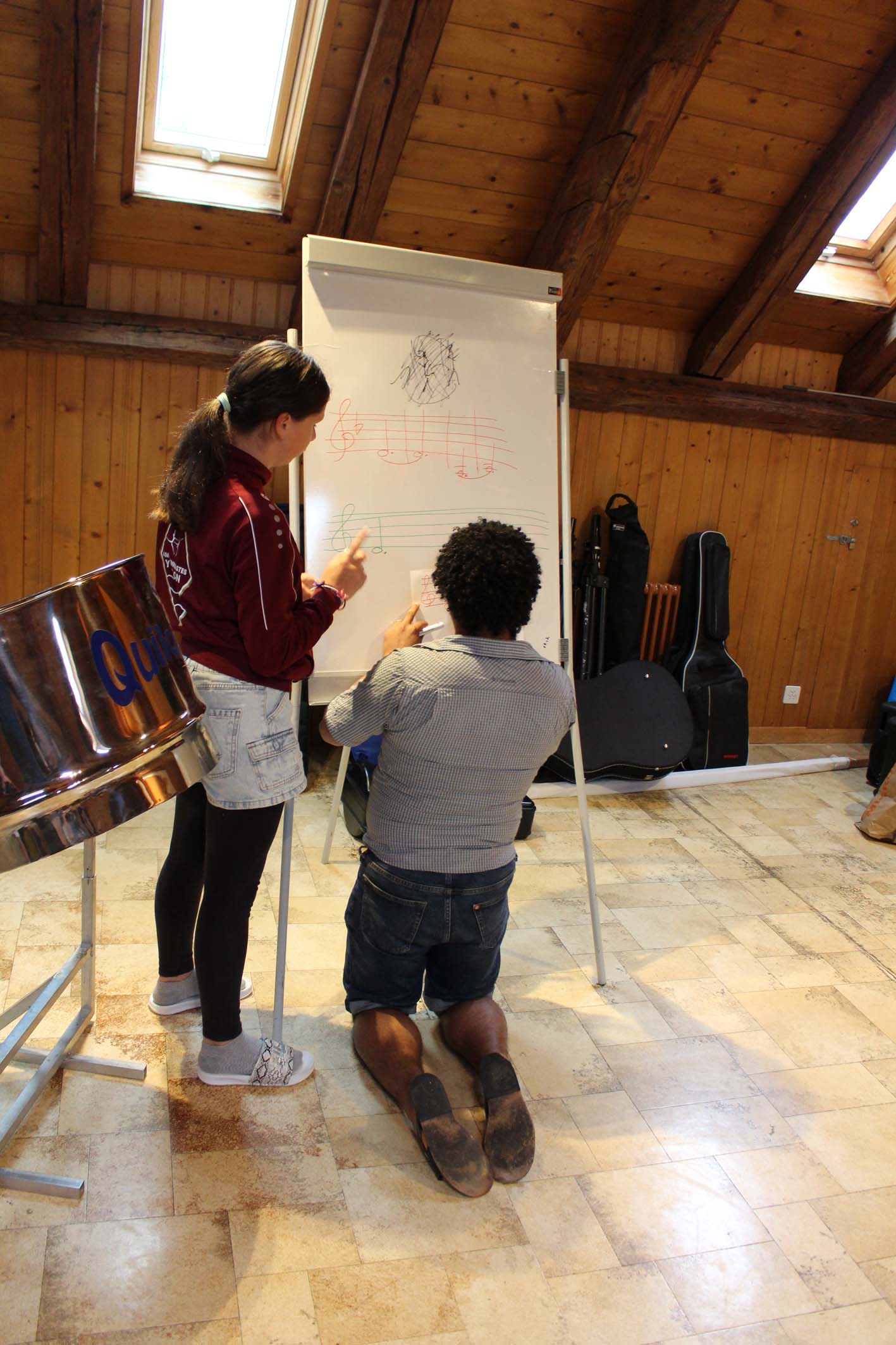 Le camp a merveilleusement démarré ! Les enfants découvrent les instruments, explorent leur musicalité en groupe et partagent de beaux moments entre amis. L’ambiance est joyeuse, rythmée... et gourmande grâce aux délicieux plats de notre chef. Tout le monde va bien, et la musique aussi !