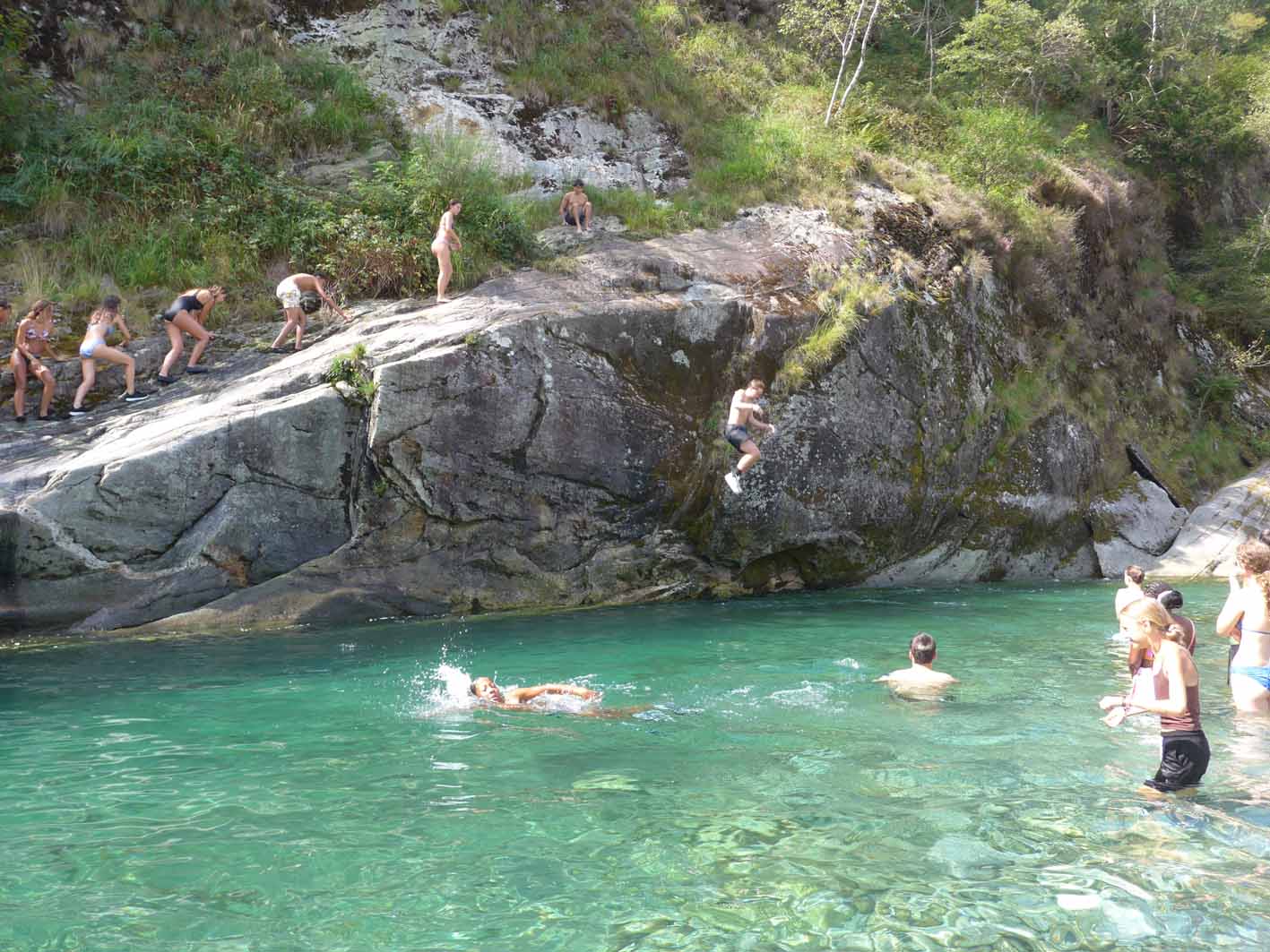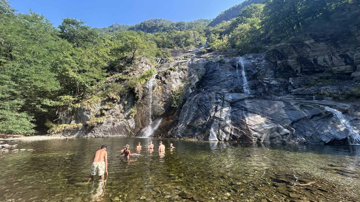 Cinq jours de minimum quatorze heures, c’est le minimum pour profiter des beautés de cette région unique en Suisse. Cette année, une journée sur la plage de Ponte Brolla, puis une matinée sous la chute de Someo et l’après-midi dans la Maggia, à Maggia, ensuite une journée de balade dans la rivière côté Gordevio pour la baignade puis jusqu’à Avegno, le 4ème jour à l’Aquasplash de Rivera et finalement une matinée à Locarno malheureusement un jour férié et l’après-midi à la plage de Locarno pour des jeux olympiques totalement loufoques.