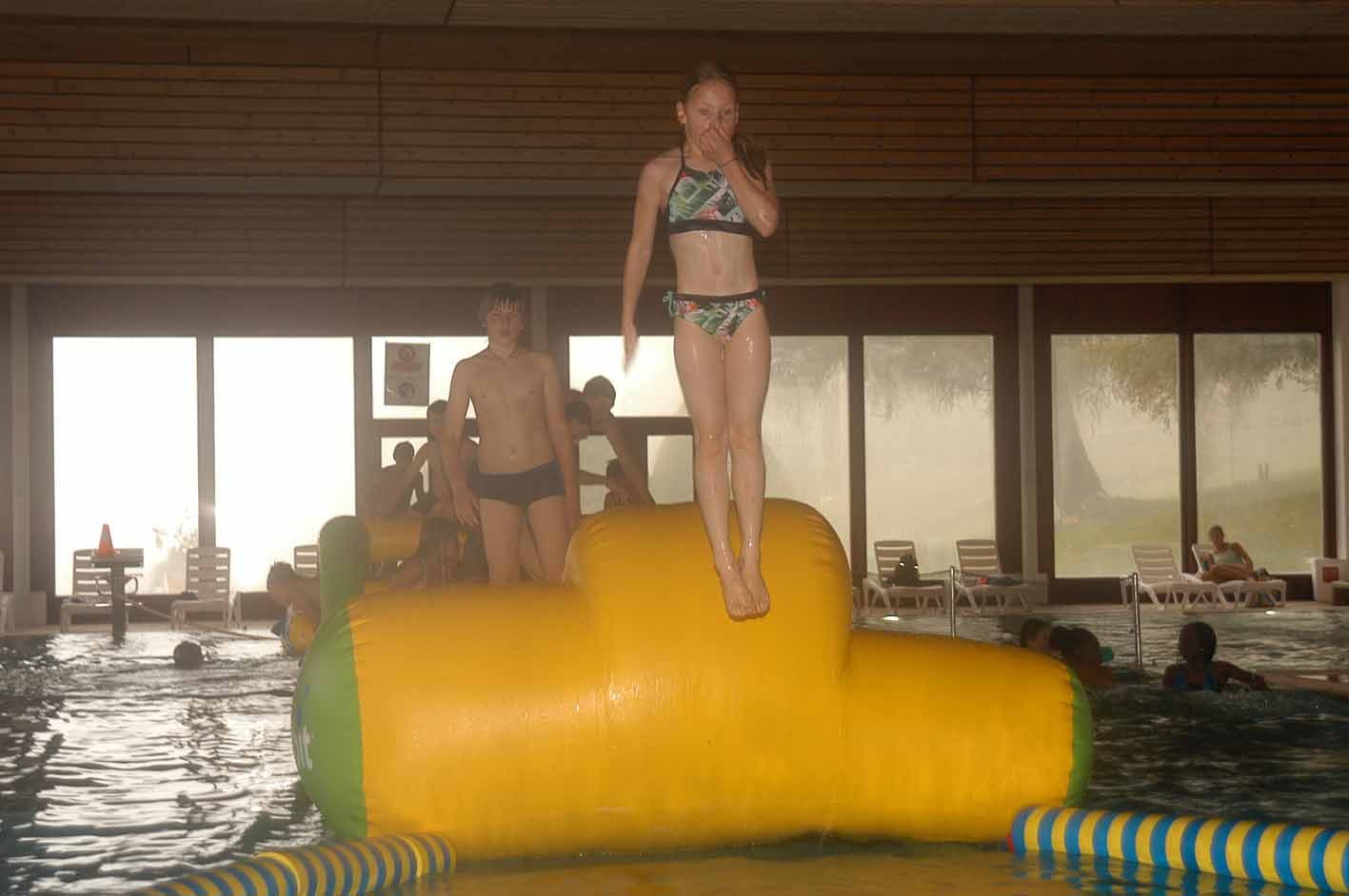 Journée ultra bien remplie, avec des jeux dans la salle de sport, puis à l’extérieur, puis à la piscine et finalement encore dehors après le souper. S’ils ne dorment pas ce soir, on les réveille à 6h demain matin... si on arrive à se lever nous, à cette heure-là, évidemment !!!