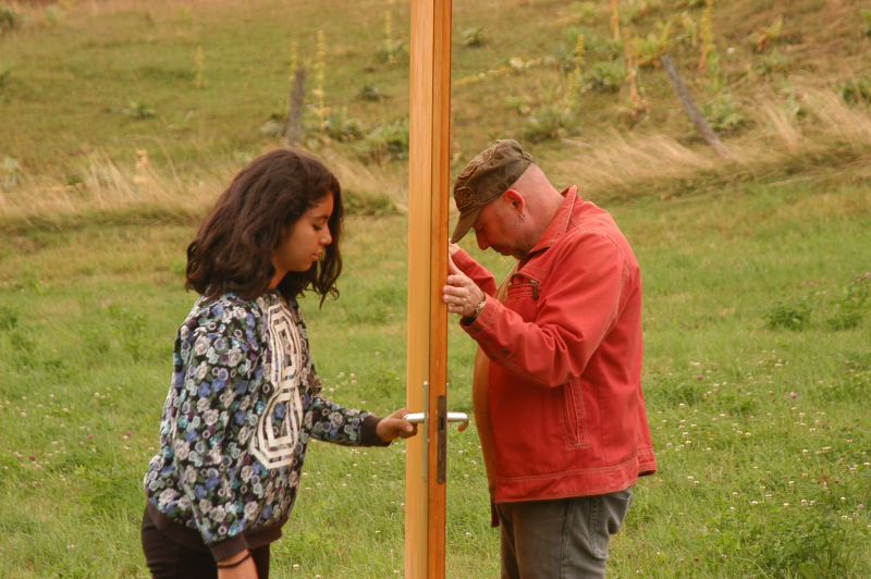 Laissez-vous surprendre par la créativité d'une dizaine de jeunes face à une porte dans les champs.